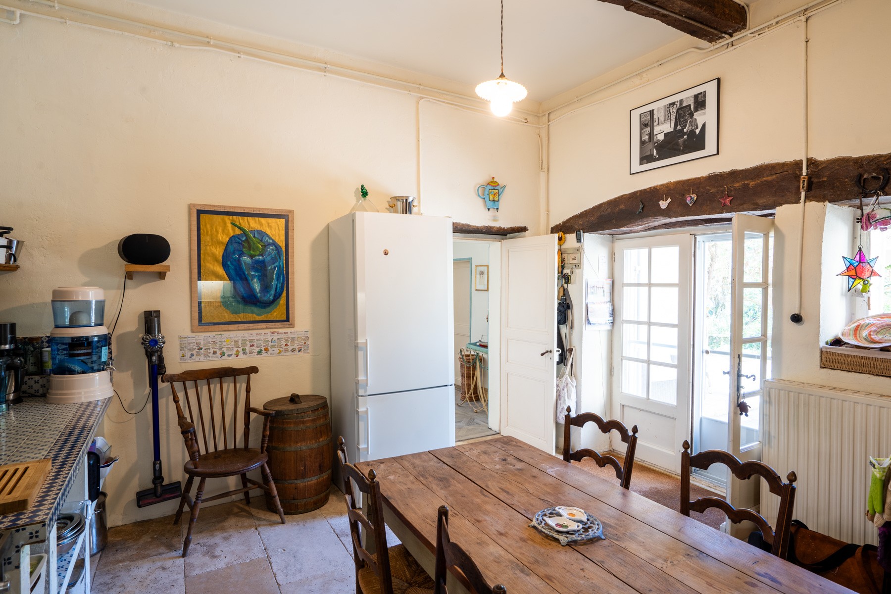 Set in the center of mature grounds, this handsome, spacious and airy ”Maison de Maître-style” property is very pleasantly presented. The house has been loved and maintained by the current owners who have retained all the original features, thus keeping its charm and character, which is certain to enchant. It offers light reception rooms on the ground floor and 4 spacious bedrooms on the first floor, including other areas of the house which may be converted into extra living spaces. It has a practical and pleasing layout with views of the gardens from every room.
