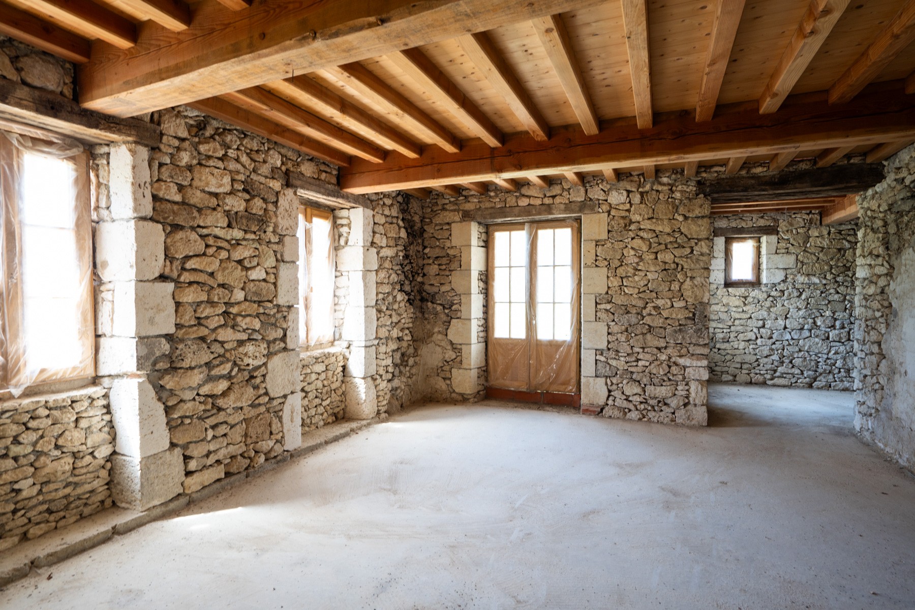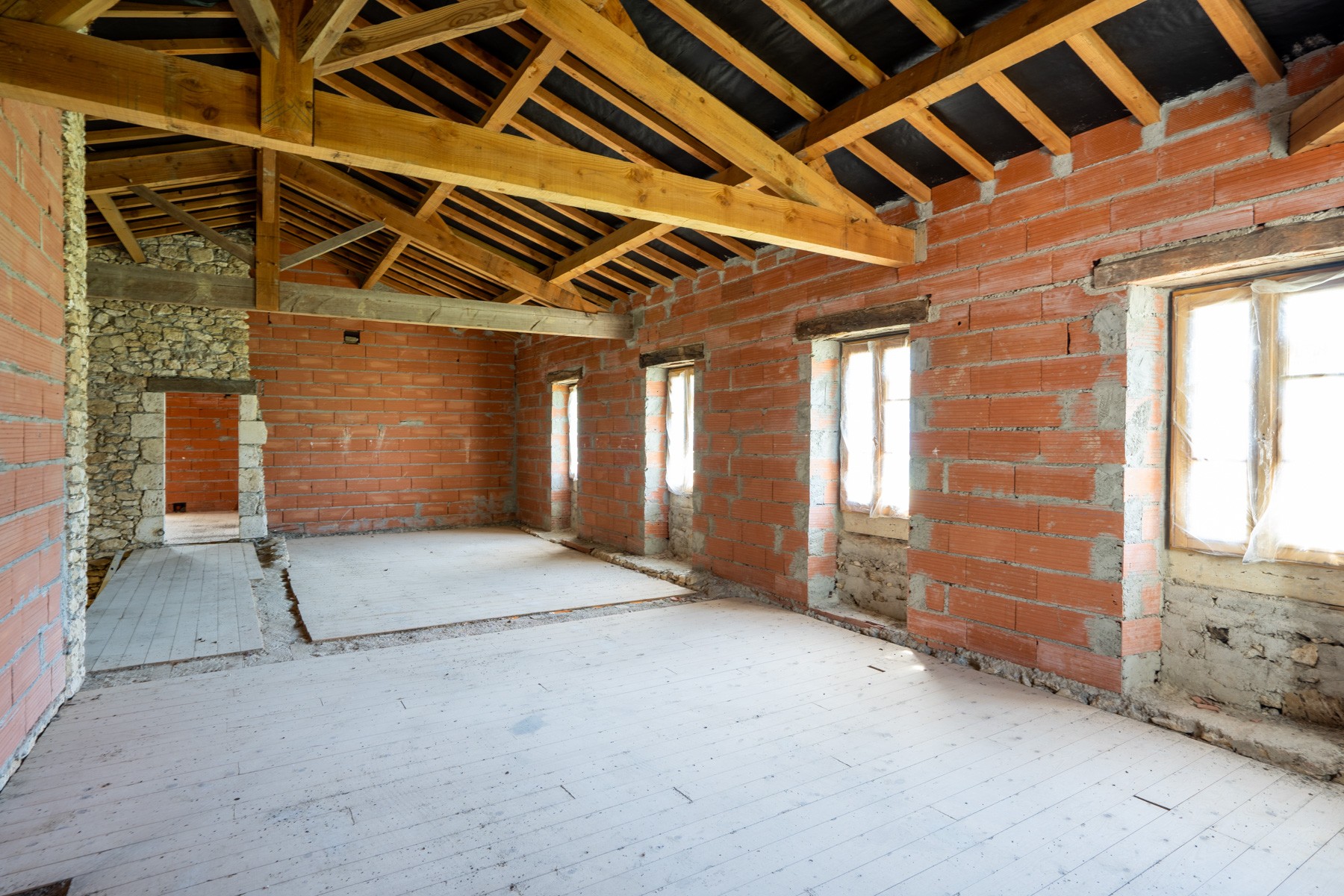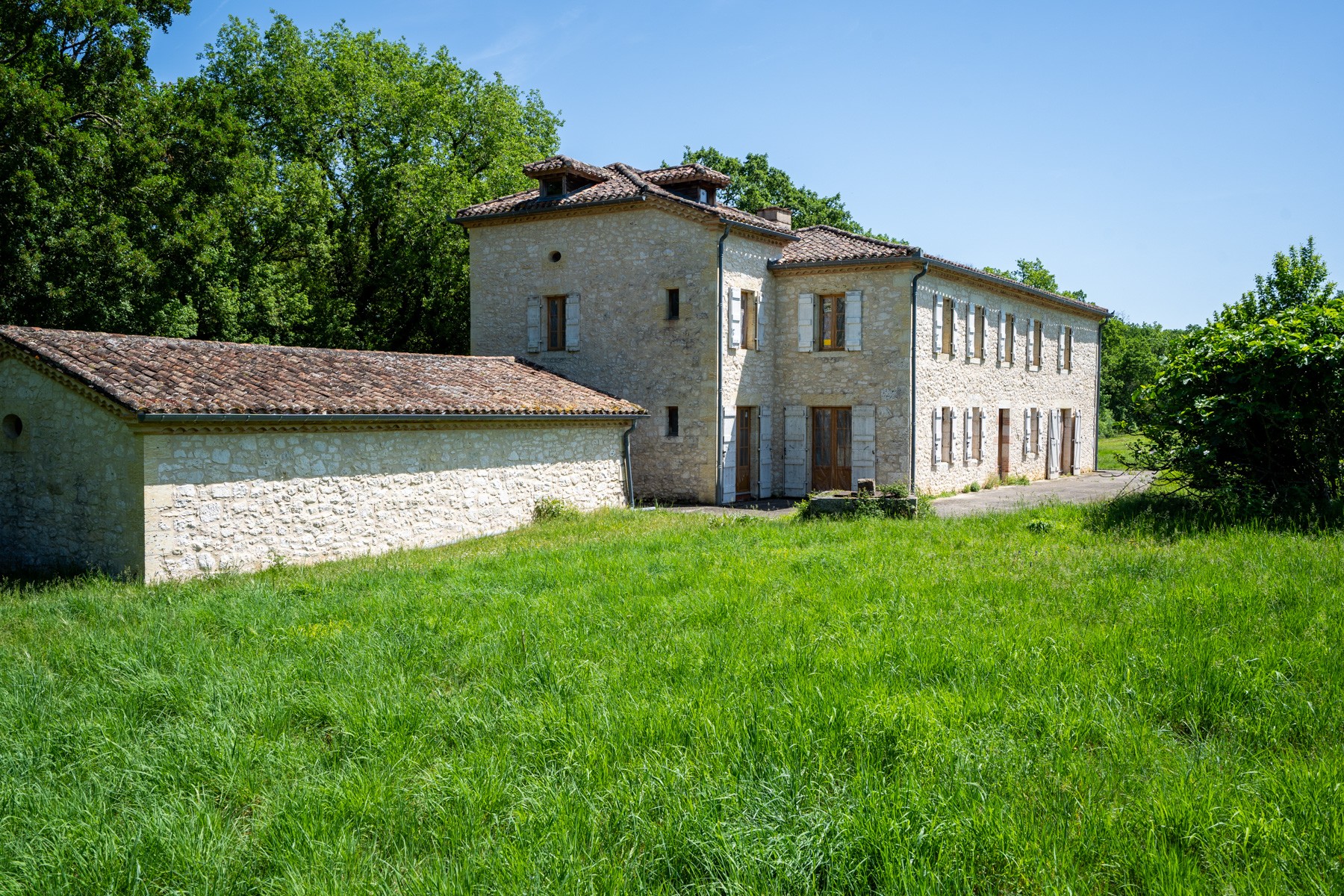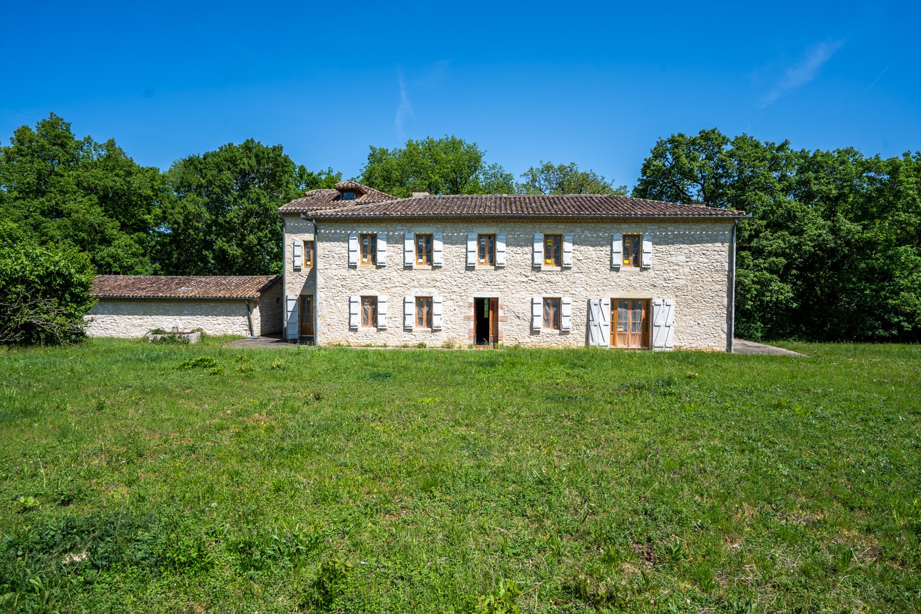 The property is set in the middle of a large wood, with approx.1.6 ha of land, free of any nuisance and neighbors! A 3 bay semi-open barn is entirely renovated to shelter your cars.